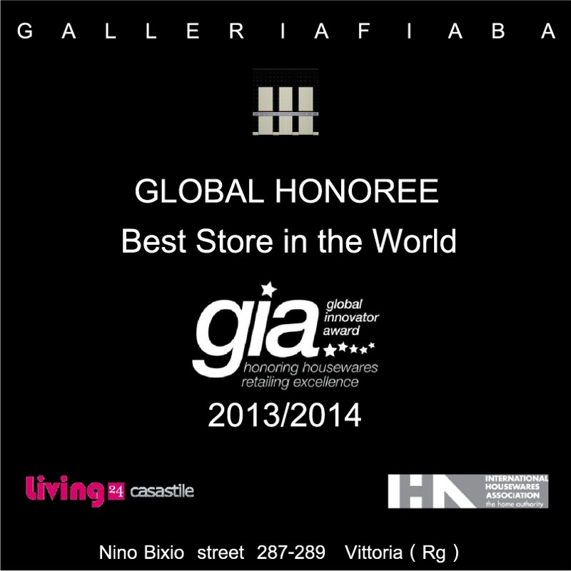 Il 16 Marzo nella splendida location del Blu Radisson Aqua Hotel Chicago durante l'evening party organizzato dall' International Housewares Association lo store Galleria Fiaba e l' Architetto Giuseppe Scollo già detentori del GIA AWARD ITALIA si sono aggiudicati il prestigioso GLOBAL HONOREE 2013/2014. Best Store in the World!